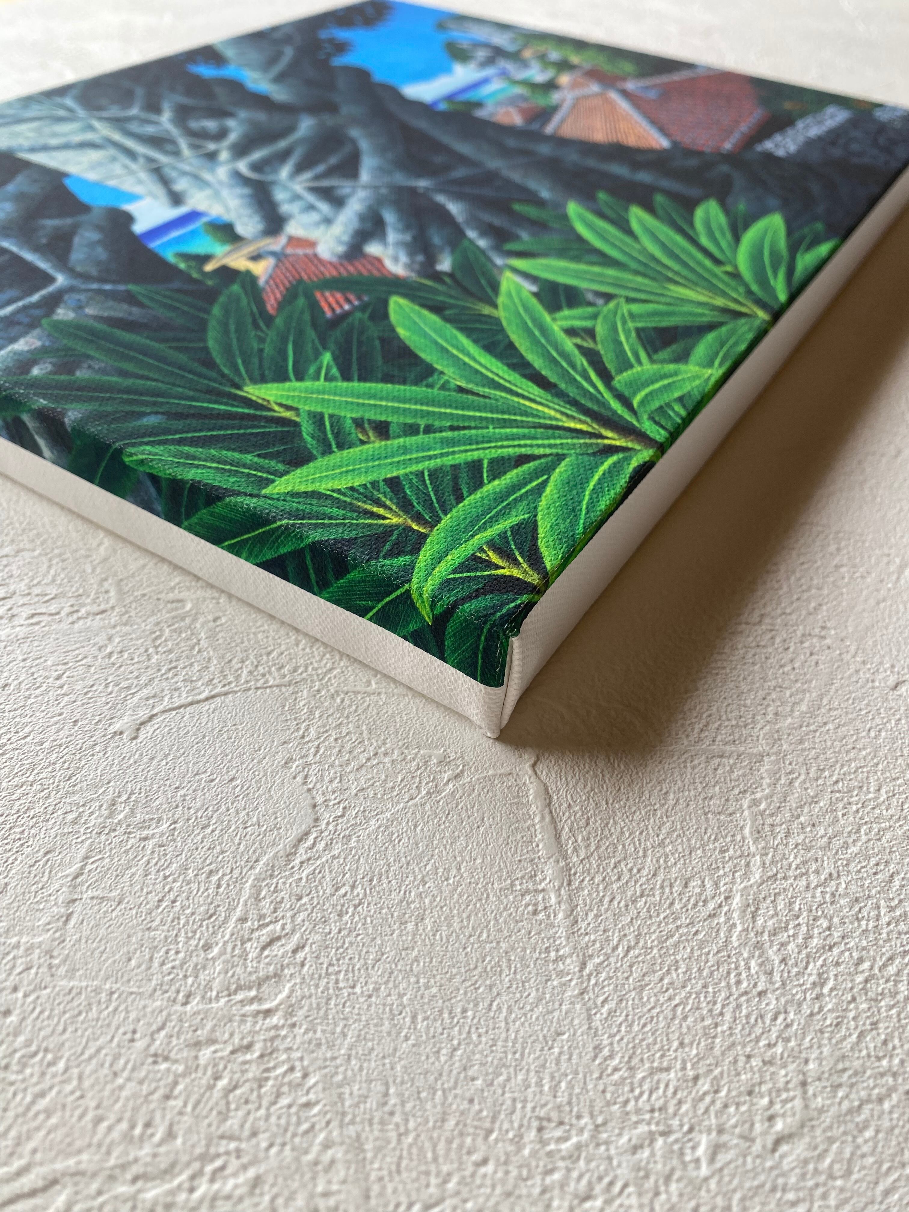 沖縄のやんばるの風景を少しアレンジして描かれておりガジュマルの木が繊細ながら大胆に描かれている人気作品です。